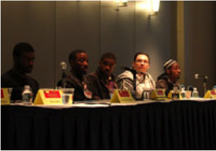 With the full attention of 400 court personnel, Free Minds members Jermaine, Chris, Terrance, Delonte, and Will stepped up to the podium to perform both their own poetry and poems written by members who are still locked up. Keeping with the theme of the conference, Free Minds then presented a film featuring other Free Minds members discussing their experiences of growing up, being exposed to violence, and the role that reading and writing have played in shaping their futures. Poet Messiah concluded the session by delivering a letter from a senior Free Minds member who had first learned to read in jail. “For all these years I wanted to say to you please forgive me, but with my limited ability to read or write, I could not fully comprehend how to convey what I felt,” “I was ultimately helped learn to how to read by a Free Minds Book Club,” read Messiah, “I developed how to process my words, how to understand how and what caused me to act the way I did as a sixteen year old then, and how to improve myself now.”