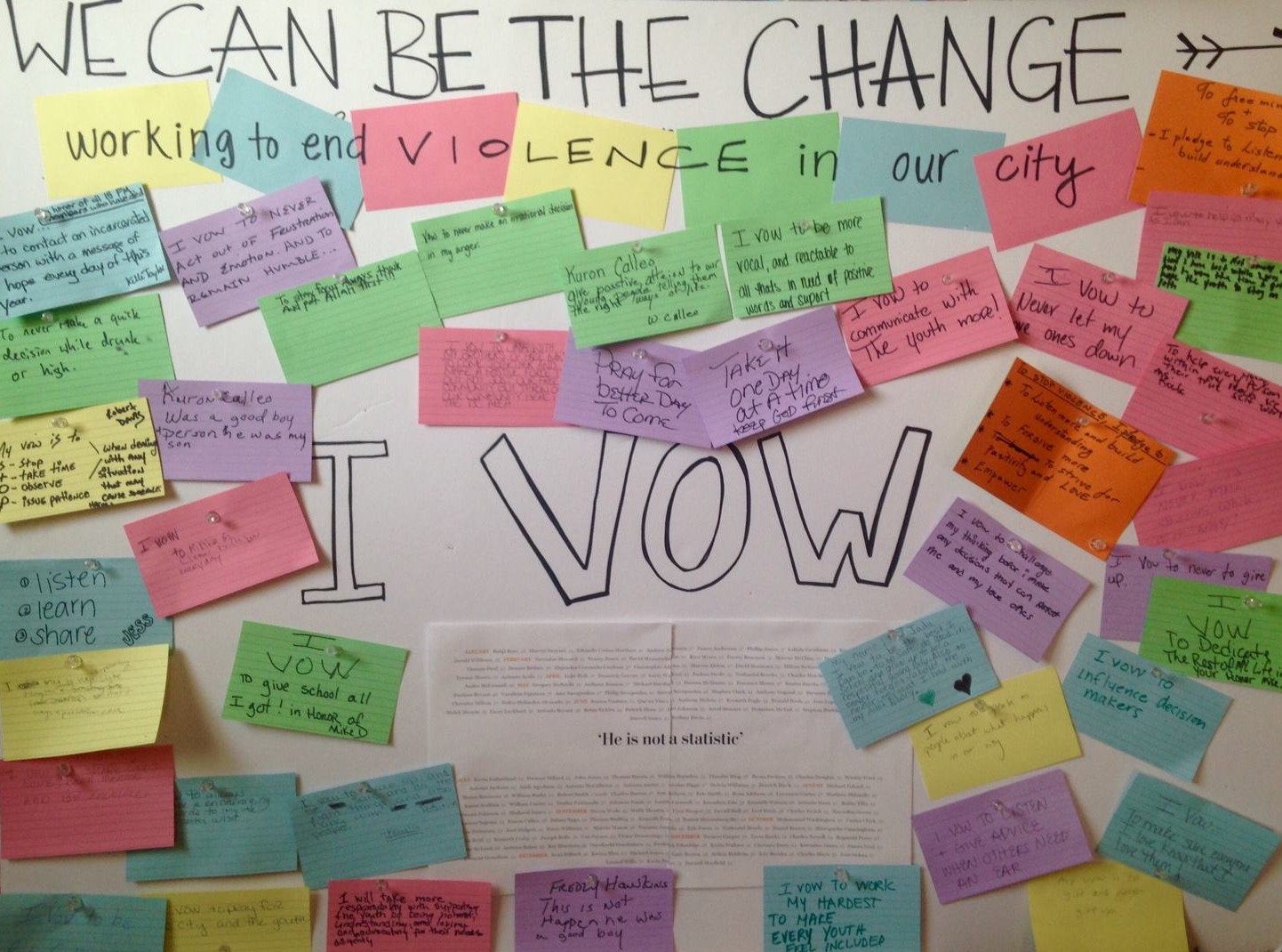 Free Minds will continue the “I Vow” campaign on February 18th at “We Can Be the Change: Working to End Violence in Our City.” Click here for ticket information.