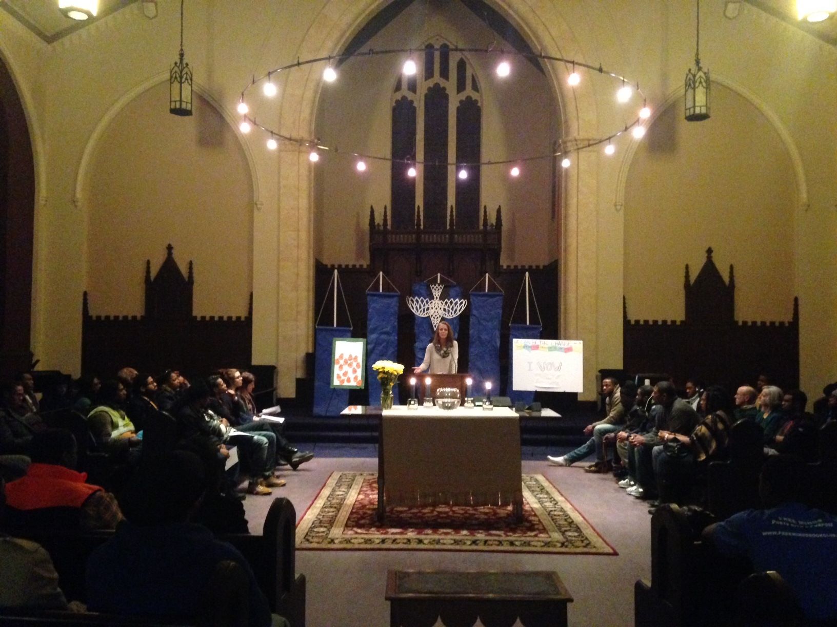 Tragically, Free Minds lost four young men last year. Since Free Minds began 13 years ago, 16 members have passed away. In an effort to honor these lives and respond with action and change, we came together on Thursday evening to recognize and remember those 16 young men, and to provide a space for Free Minds members and families to honor their other loved ones who have also passed away. We are grateful to the Church of the Pilgrims for allowing us to use their sanctuary as a safe space for reflection and community building.